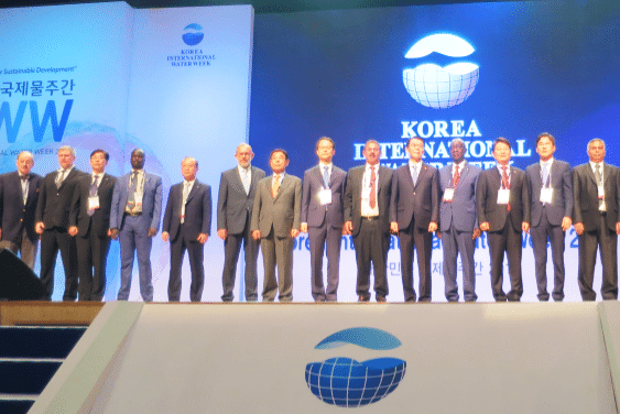 “The first Korean International Water Week will be an important enabler for our global efforts,” World Water Council Treasurer Guy Fradin said last week at the Opening Ceremony of Korea International Water Week in Daegu, Republic of Korea. He was speaking on behalf of Council President Benedito Braga, in the presence of Kang Hoin, Minister of Land Infrastructure and Transport of the Republic of Korea. “Many international processes are rising to the occasion to meet our water challenges,” Mr. Fradin continued. “We shall seek to create more paths and implement more solutions as we move towards the 8th World Water Forum in Brasilia in 2018.” The ceremony marked the beginning of a three-day international gathering in which the Council actively participated. On 19 and 20 October, the World Water Council and Korea Water Forum co-organized the 7th World Water Forum Implementation Roadmaps Annual Review Meeting. Building upon the World Water Council’s event “Action speaks louder than words: Implementation Roadmaps for catalyzing change” held in August 2016 during the Stockholm International Water Week, the meeting gathered Daegu-Gyeongbuk Implementation Commitment (DGIC) Champions to assess progress, share information and responsibilities, and plan activities in the lead-up to the 8th World Water Forum, in 2018, in Brazil. In his opening, Mr. Fradin reminded participants that the Implementation Roadmaps are an innovative mechanism to bridge editions of the World Water Forum and “therefore, the feedback of DGIC Champions, who are at the forefront of this initiative, is crucial to readjust and smooth the process”. The session also helped identify necessary updates to be made to the online Action Monitoring System platform and the bi-annual Progress Report of which the second edition was launched on this occasion. On the second day of the meeting, Prof. Werneck-Lima, Vice-Chair of the 8th World Water Forum Thematic Process Commission presented the preparatory process of the Brazilian Forum and engaged in a dialogue with DGIC Champions on the added value that Implementation Roadmaps will be bringing to Brasilia in 2018. In parallel, the World Water Council participated in bilateral meetings with Minister Kang and Vice-Minister Yoo Seong-jong and other high-level officials. The Council was also highly involved in the Water Leaders Roundtables and the World Water Partnership session and contributed to fruitful discussions on the sustainable development of water.