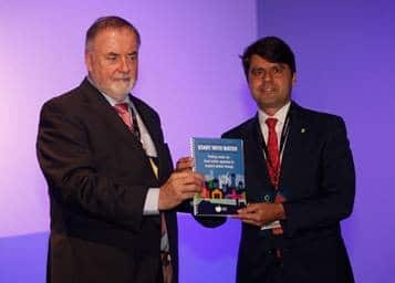 Lors d'une table ronde réunissant des maires du monde entier à l'issue de la conférence de l'ARS, Rajendra Singh, lauréat du prix de l'eau de Stockholm, a expliqué l'importance de la gestion de l'eau : “Si nous respectons la communauté locale et le gouvernement local et que nous leur apprenons à prendre leurs responsabilités, ils comprendront que la prospérité doit commencer par l'amour, l'affection et le respect. C'est en travaillant avec ma communauté que j'ai appris que le changement était possible. Je peux dire qu'aujourd'hui, il y a une migration inverse, des millions de personnes reviennent dans les zones rurales, retournent à l'agriculture et profitent de la vie avec bonheur. Je ne sais pas quel impact j'ai eu sur le PIB local, mais je sais quel a été l'impact sur le bonheur de ma communauté. L'eau crée le bonheur, la paix et la prospérité au sein d'une communauté. Mais pour cela, l'eau doit être traitée avec amour, affection et respect”.”